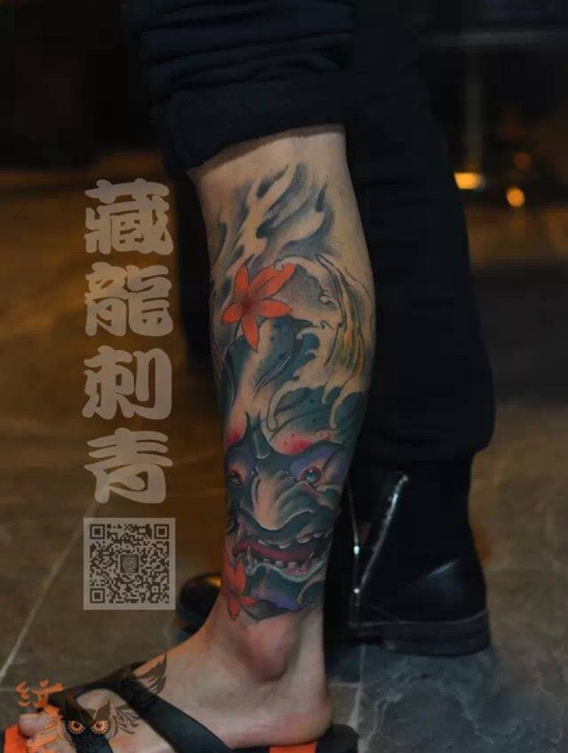 • T网红王老大花腿龙纹身图片_腿部新传统纹身图案