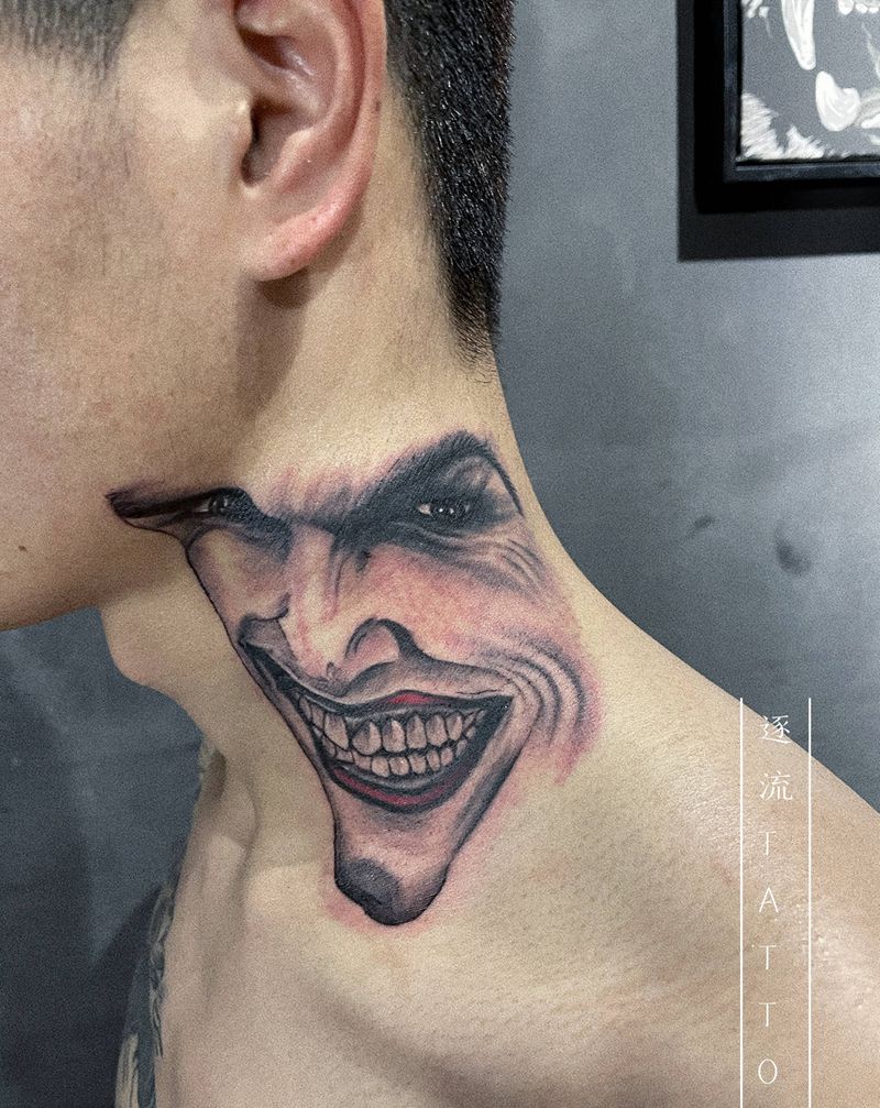当前位置: 首页 >浙江省丽水市纹身店-逐流刺青纹身图案>小丑纹身图片_颈部欧美写实纹身图案
