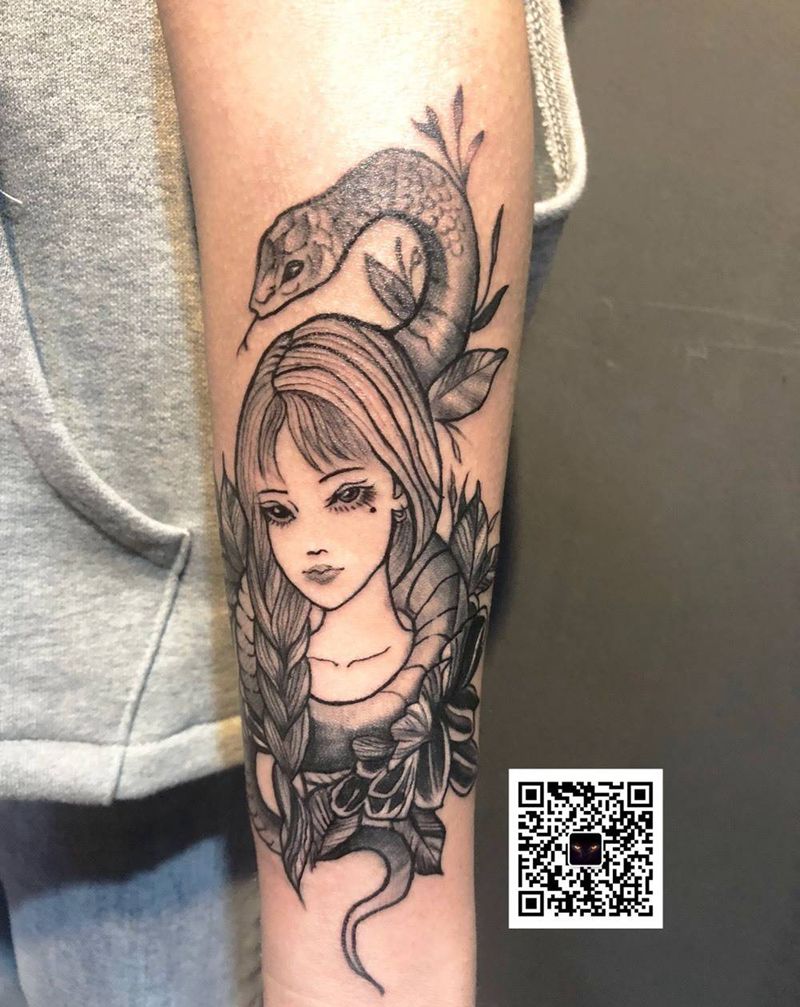 当前位置: 首页 >浙江省丽水市纹身店-逐流刺青纹身图案>美女与蛇纹身图片_手臂纹身图案