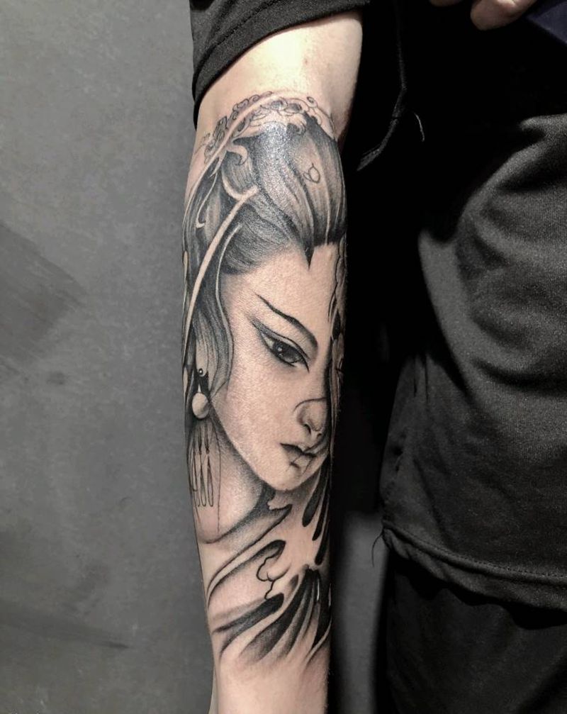 艺伎般若面具纹身图片_手臂新传统纹身图案