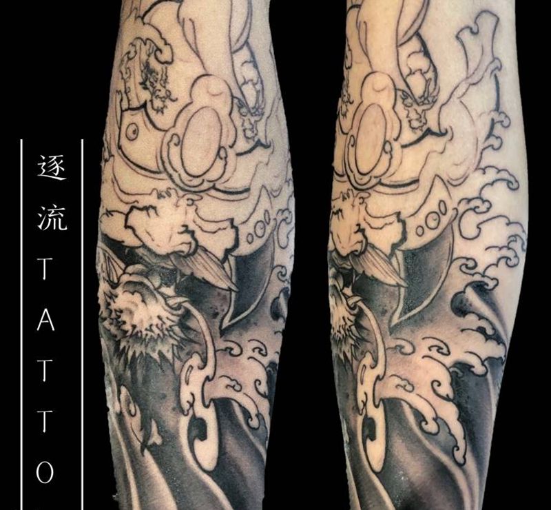 黑灰满背纹身图案