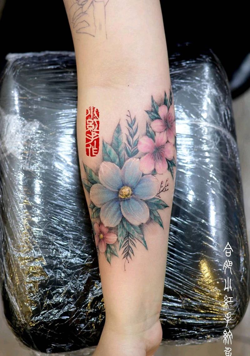 当前位置: 首页 >安徽省合肥市纹身店-小红手纹身工作室纹身图案>手臂小花彩花