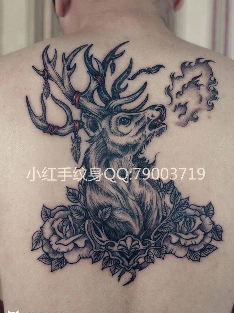 黑灰满背纹身图案