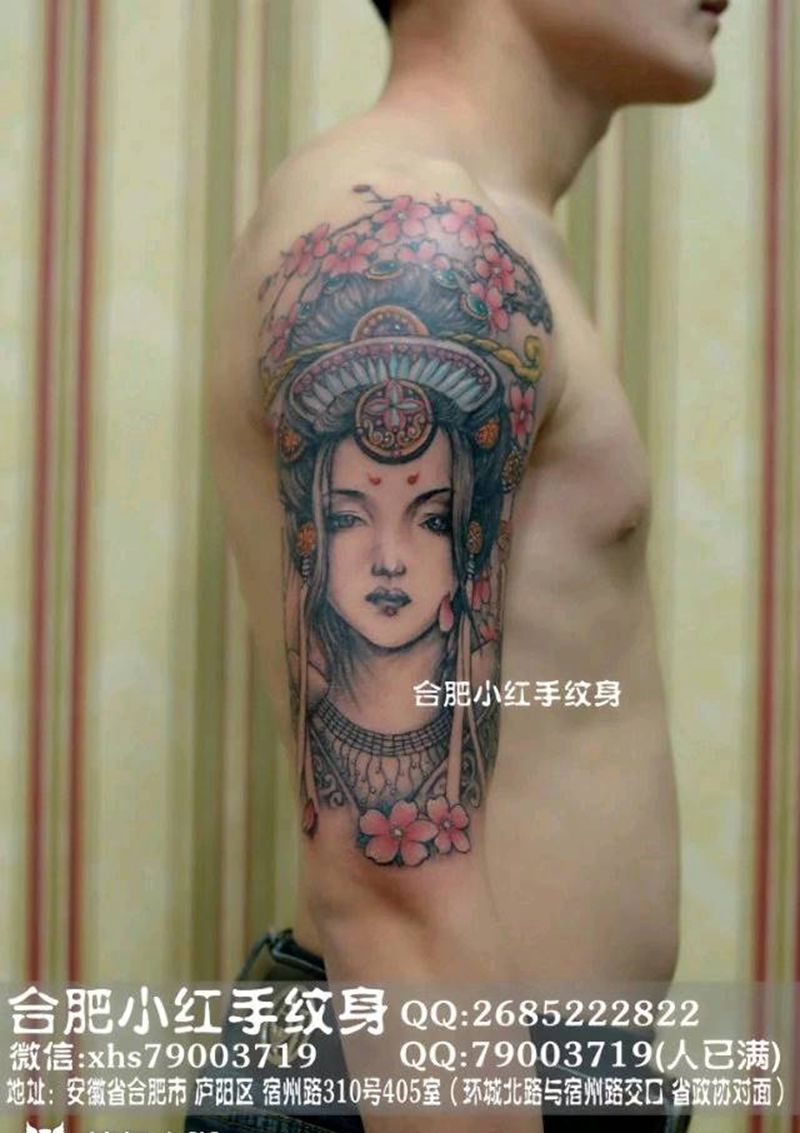 当前位置: 首页 >安徽省合肥市纹身店-小红手纹身工作室纹身图案>大臂艺妓未完成。纹身图片