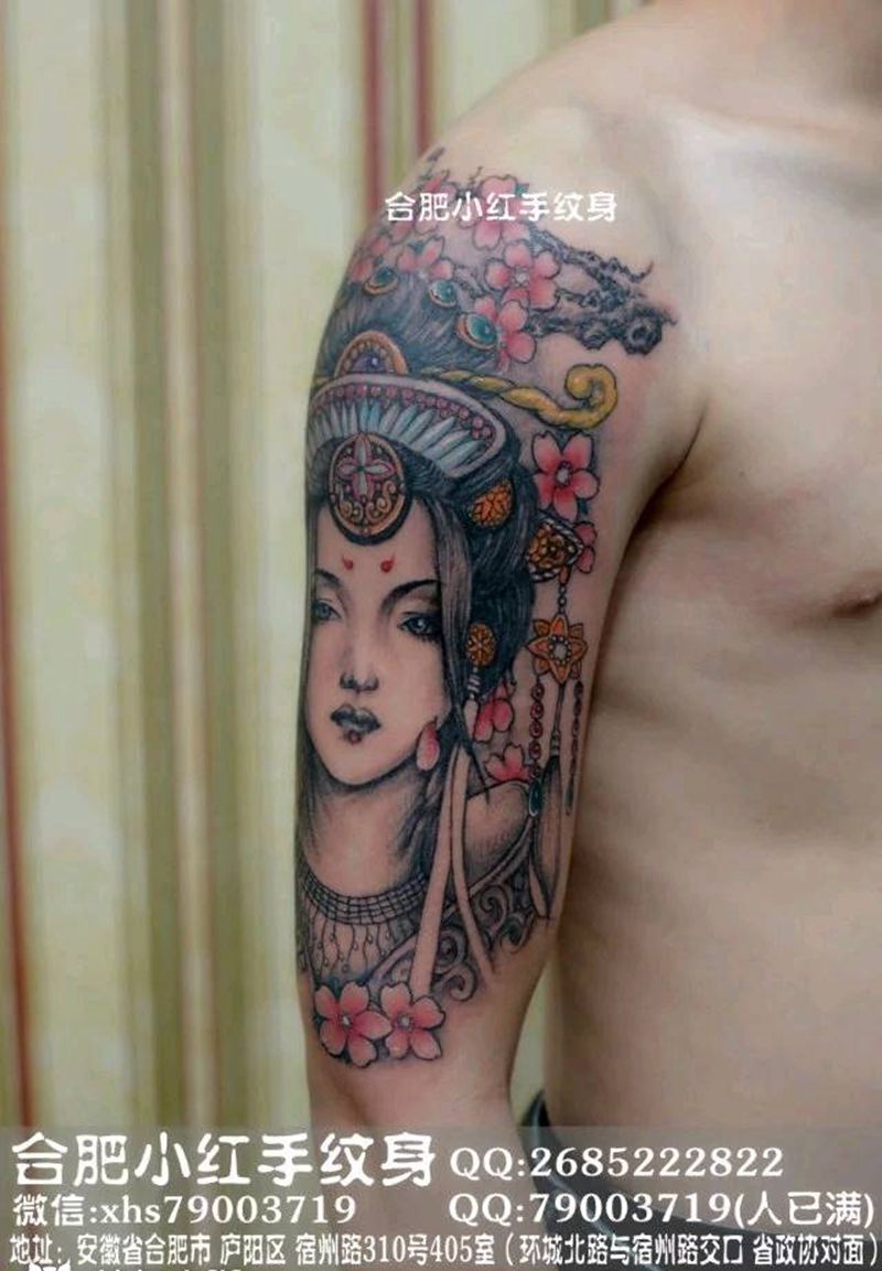 当前位置: 首页 >安徽省合肥市纹身店-小红手纹身工作室纹身图案>大臂艺妓未完成。纹身图片
