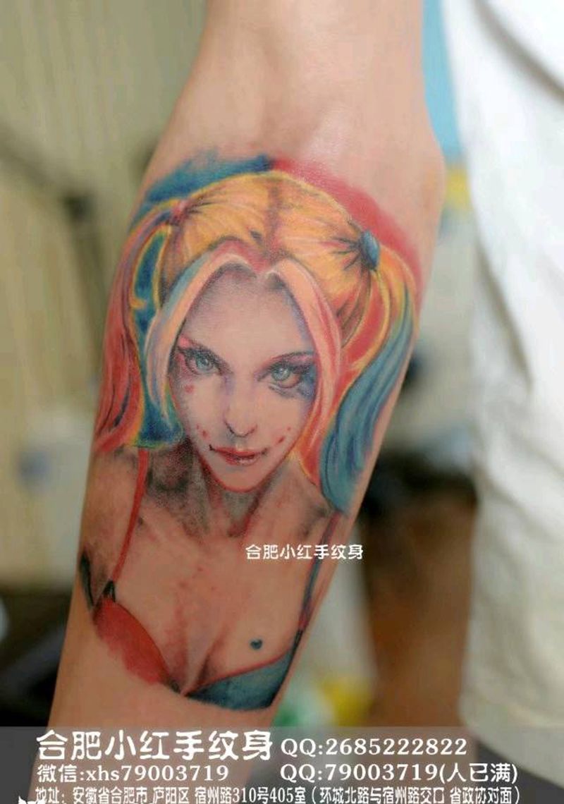 当前位置: 首页 >安徽省合肥市纹身店-小红手纹身工作室纹身图案>小臂全彩 哈利奎因纹身图片
