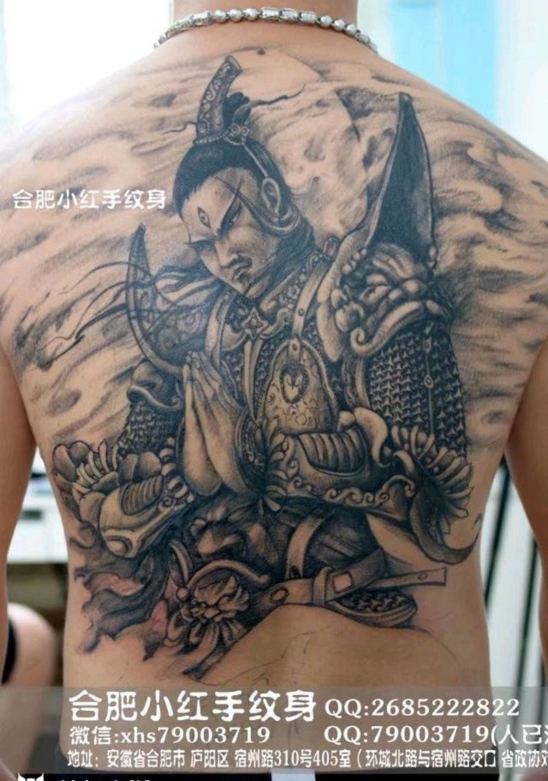 黑灰满背纹身图案