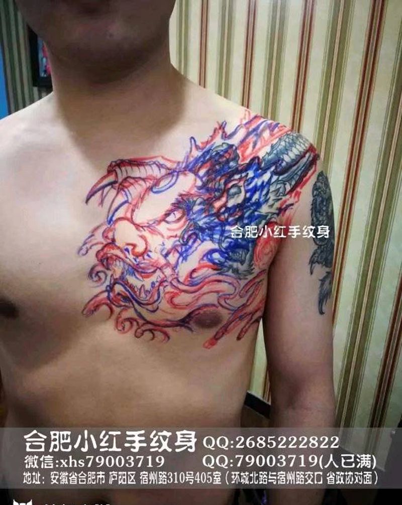 当前位置: 首页 >安徽省合肥市纹身店-小红手纹身工作室纹身图案>遮盖失败纹身 皮皮虾秒变过肩龙纹身图片