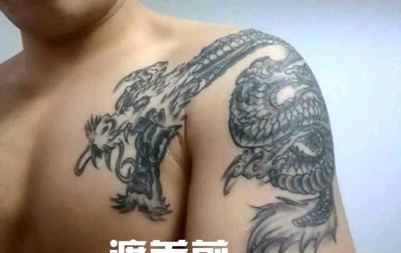 遮盖失败纹身 皮皮虾秒变过肩龙纹身图片