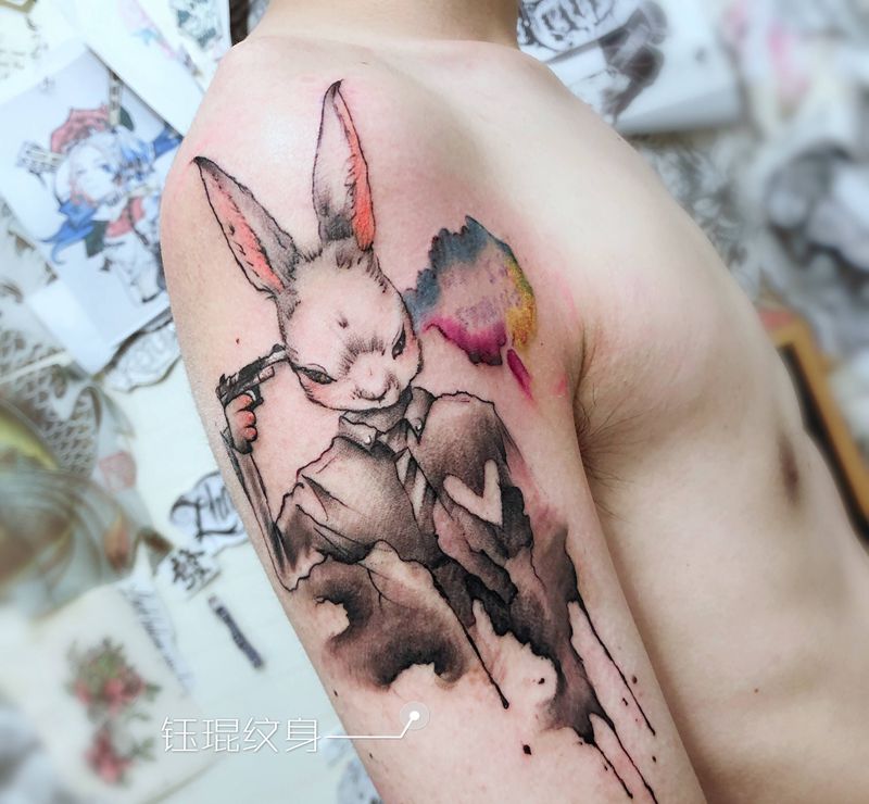 当前位置: 首页 >浙江省丽水市纹身店-钰琨纹身工作室纹身图案>大臂手枪兔纹身图片_手臂纹身图案