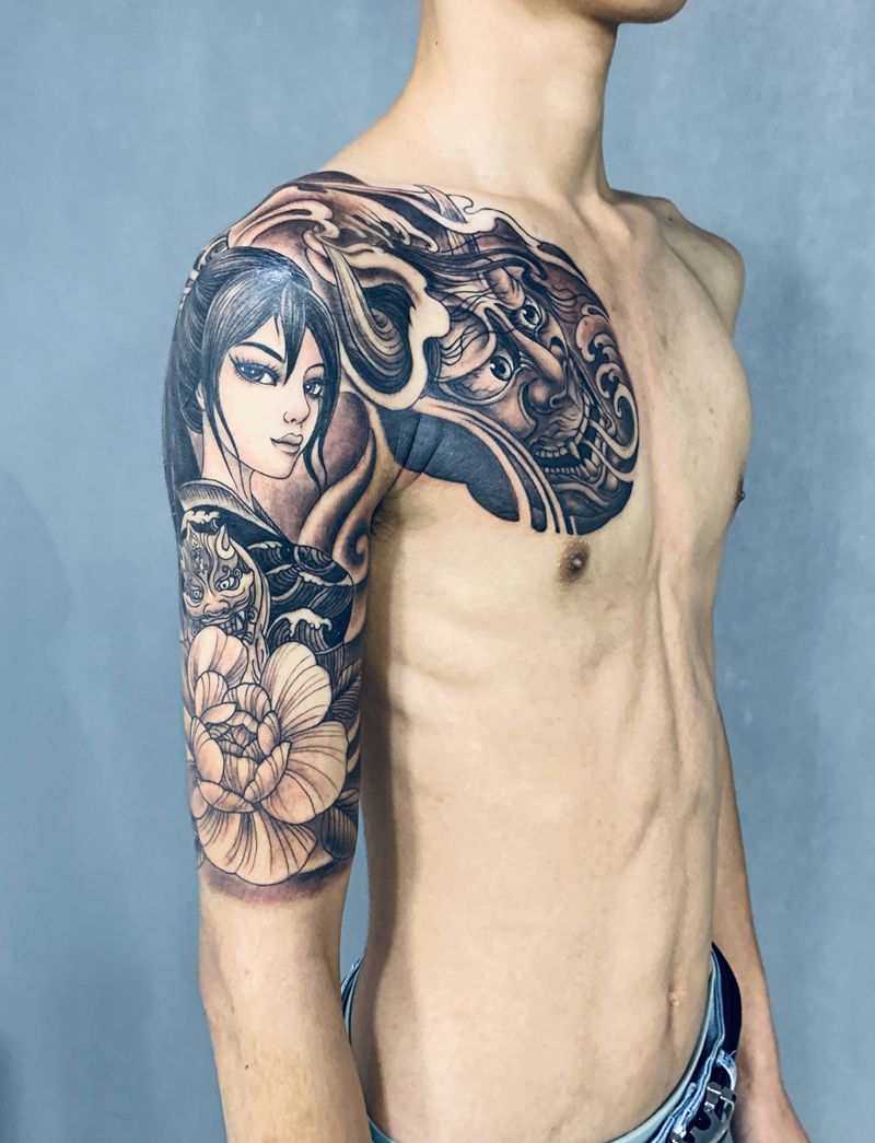 一组9张般若纹身手