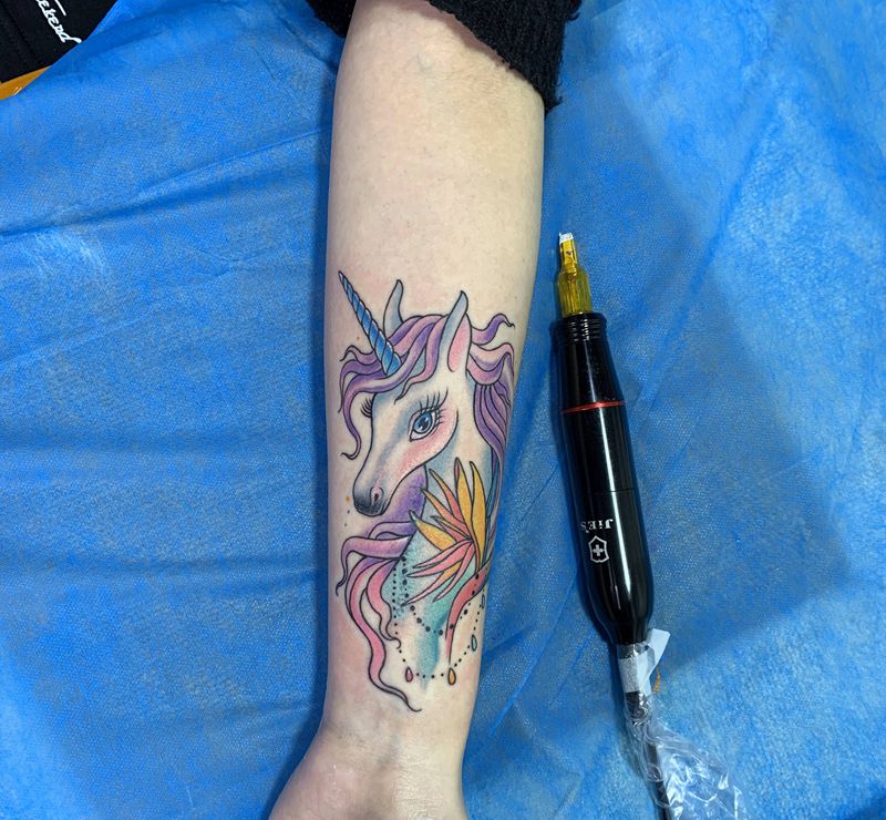 当前位置: 首页 >安徽省合肥市纹身店-倩倩刺青纹身图案>独角兽遮盖老纹身纹身图片_手臂手部水彩纹身图案