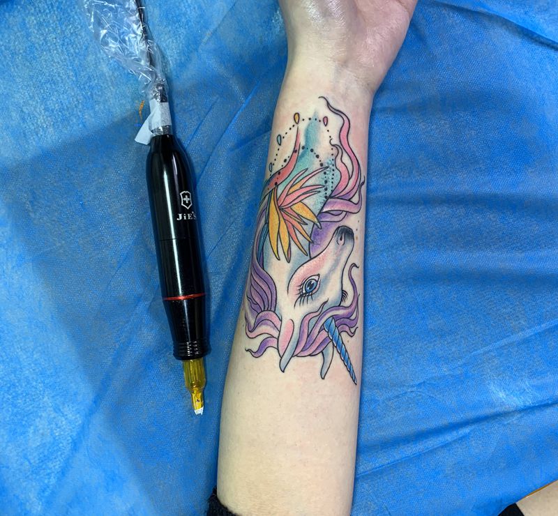 当前位置: 首页 >安徽省合肥市纹身店-倩倩刺青纹身图案>独角兽遮盖老纹身纹身图片_手臂手部水彩纹身图案