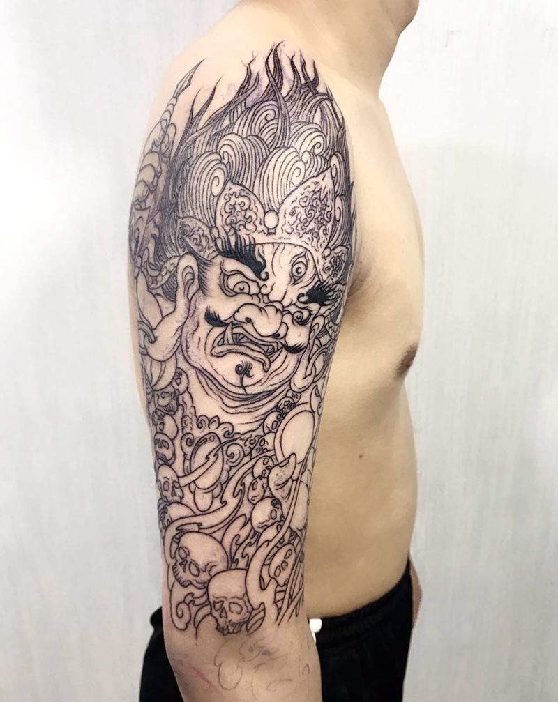 当前位置: 首页 >安徽省合肥市纹身店-倩倩刺青纹身图案>大黑天线条纹身图片_手臂手部新传统老传统纹身图案