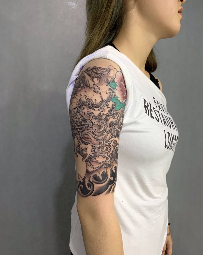 唐狮子纹身图片_手部手臂老传统新传统纹身图案