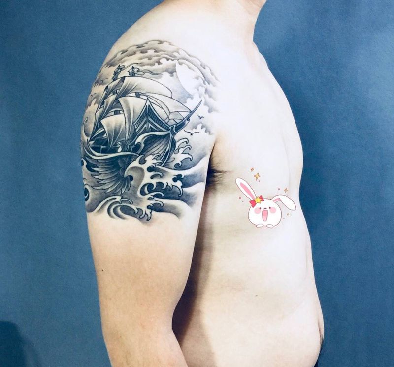 当前位置: 首页 >安徽省合肥市纹身店-倩倩刺青纹身图案>帆船纹身图片_手臂手部Old SchoolNew School纹身图案