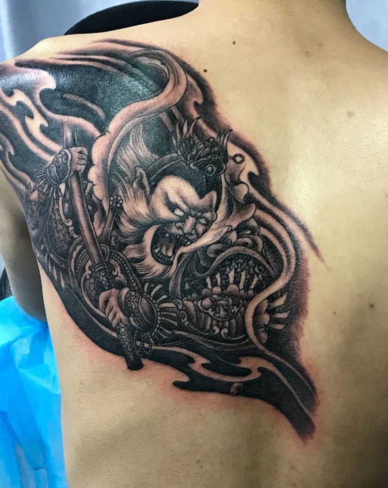 当前位置: 首页 >安徽省合肥市纹身店-倩倩刺青纹身图案>遮盖老纹身纹身图片_成品背部传统人物纹身图案