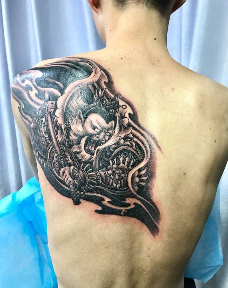 当前位置: 首页 >安徽省合肥市纹身店-倩倩刺青纹身图案>遮盖老纹身纹身图片_成品背部传统人物纹身图案