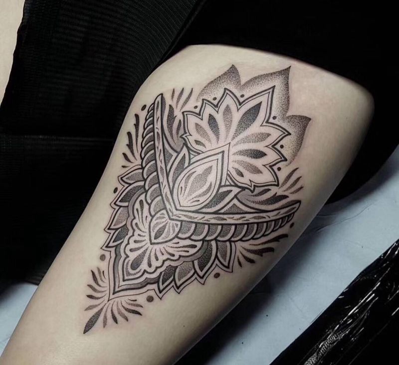• T网红王老大花腿龙纹身图片_腿部新传统纹身图案