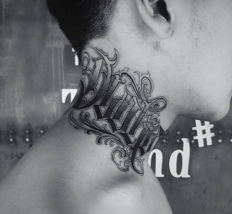 当前位置: 首页 >浙江省丽水市纹身店-故事绘文身纹身图案>花体脖子纹身图片