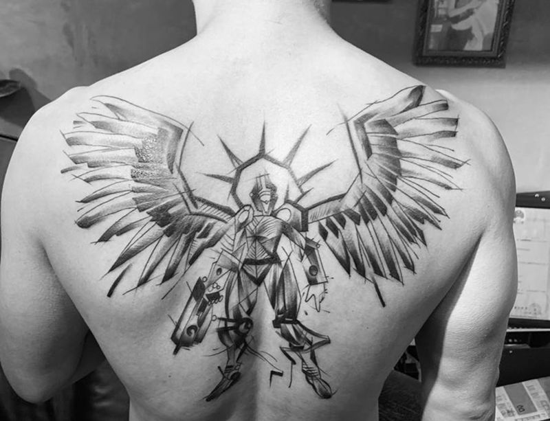黑灰满背纹身图案