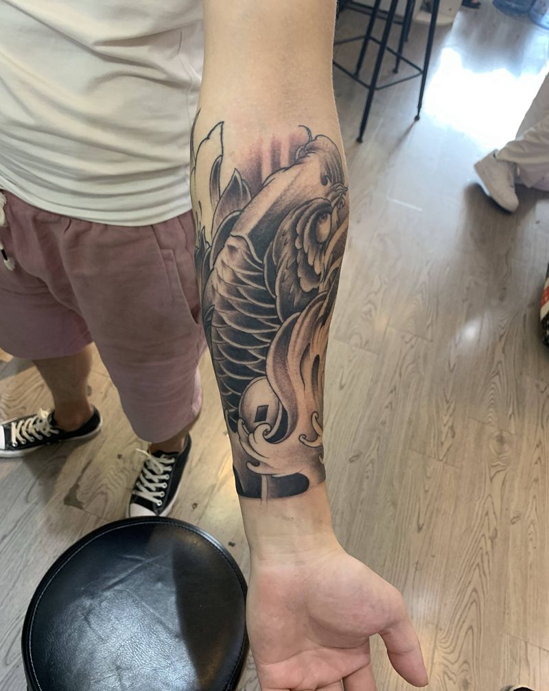 小臂 胳膊肘留着接花臂纹身图片_手臂新传统老传统鱼 小臂 小臂花臂纹身图案