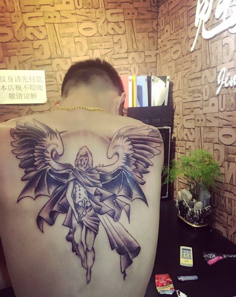 黑灰满背纹身图案