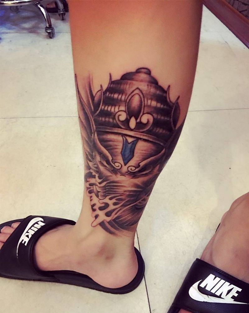 • T网红王老大花腿龙纹身图片_腿部新传统纹身图案