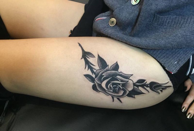 当前位置: 首页 >浙江省丽水市纹身店-金魁刺青纹身图案>黑灰玫瑰纹身图片_成品腿部欧美清新植物原创纹身图案