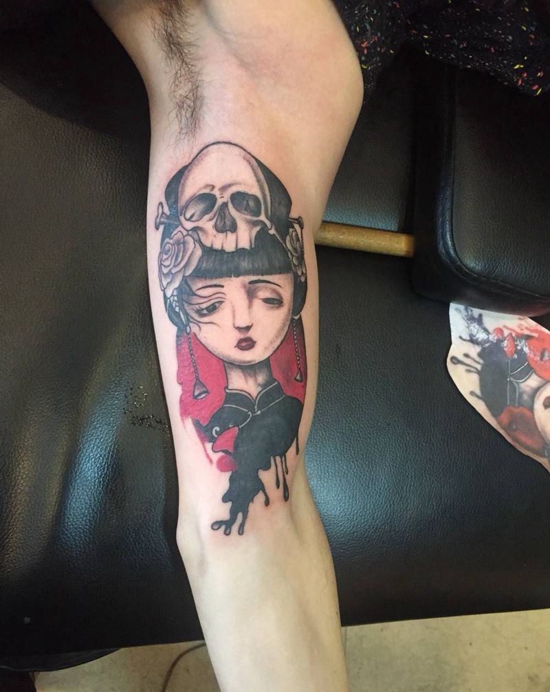 当前位置: 首页 >浙江省丽水市纹身店-金魁刺青纹身图案>就叫艺妓吧纹身图片_成品手臂传统欧美肖像人物鬼神纹身图案