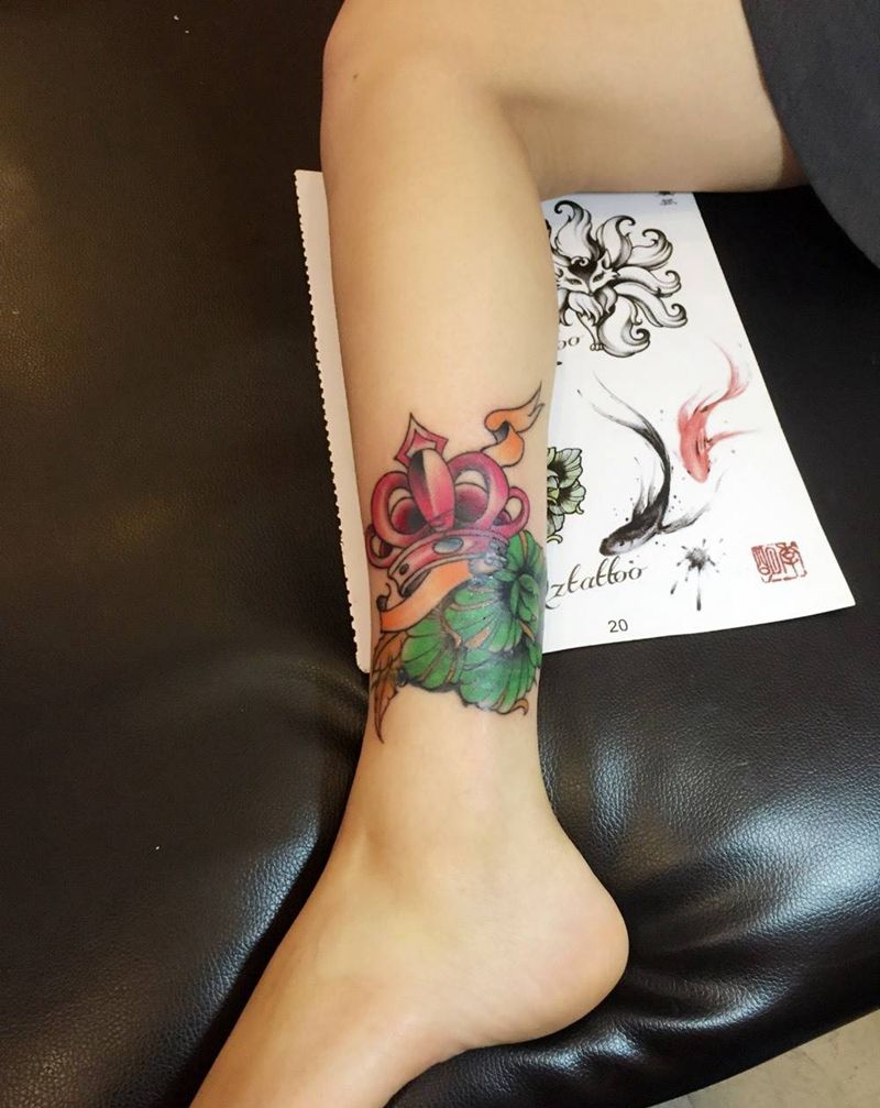当前位置: 首页 >浙江省丽水市纹身店-金魁刺青纹身图案>遮盖皇冠纹身图片_成品腿部欧美清新植物静物纹身图案