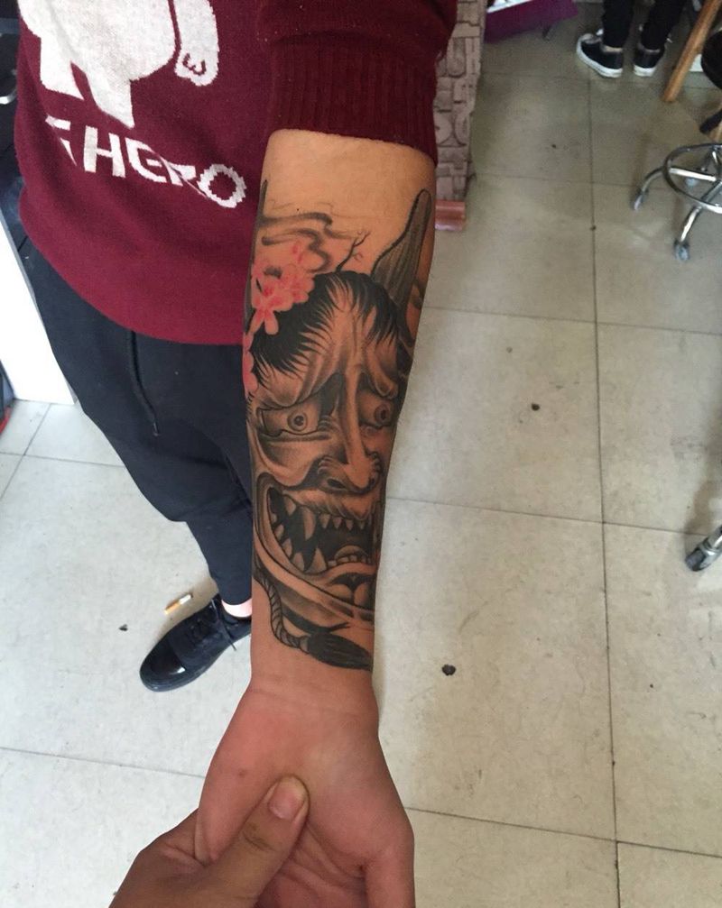 当前位置: 首页 >浙江省丽水市纹身店-金魁刺青纹身图案>般若纹身图片_成品手臂传统肖像人物鬼神宗教纹身图案