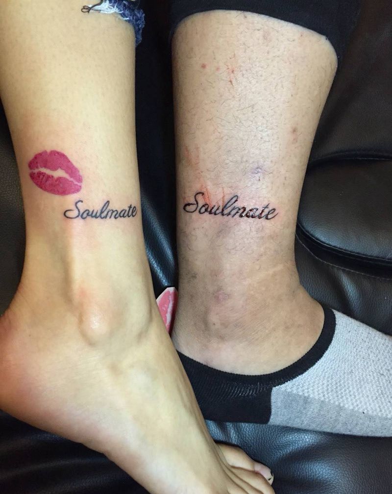 情侣纹身纹身图片_成品腿部脚部欧美清新字符情侣纹身图案