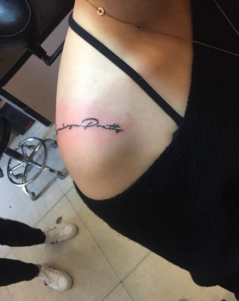 当前位置: 首页 >浙江省丽水市纹身店-金魁刺青纹身图案>小清新字母纹身图片_成品肩部清新字符原创腿部纹身图案