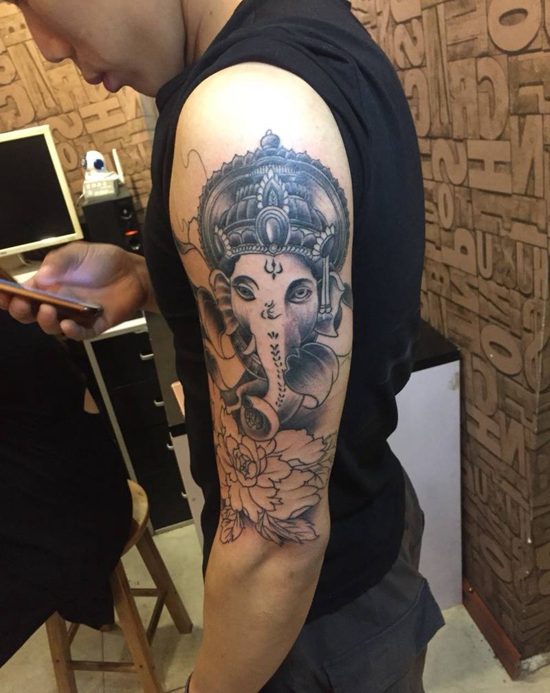 当前位置: 首页 >浙江省丽水市纹身店-金魁刺青纹身图案>象神,未完成纹身图片_成品手臂传统动物植物纹身图案