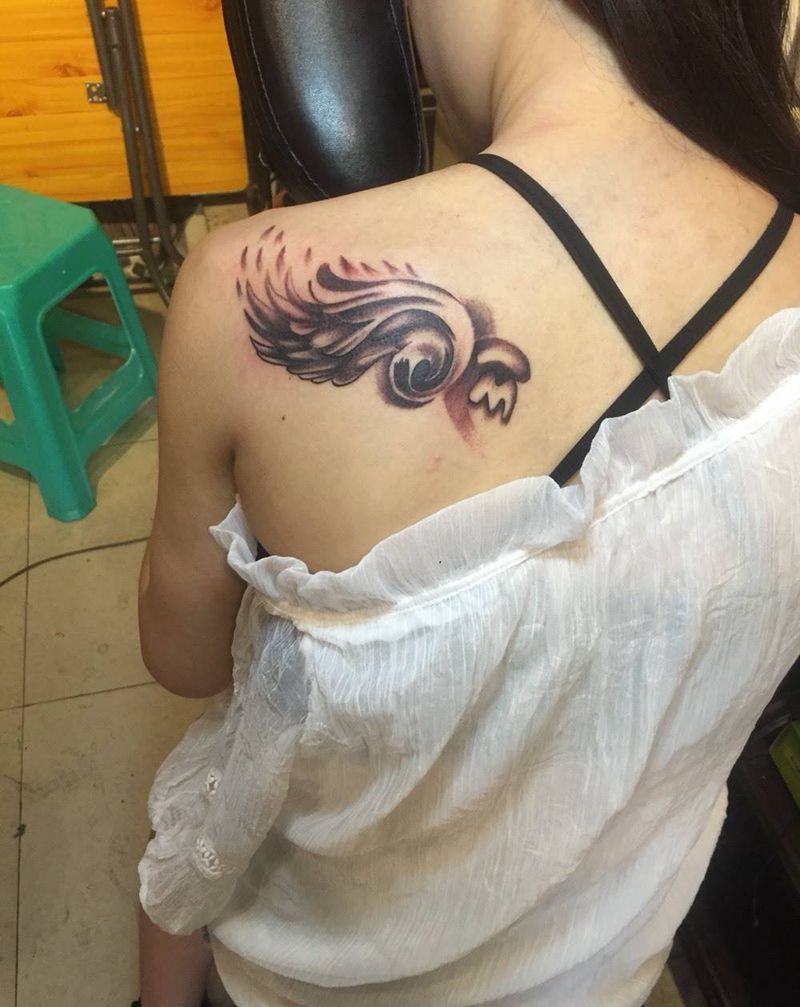 我要飞得更高纹身图片_成品肩部欧美清新动物纹身图案