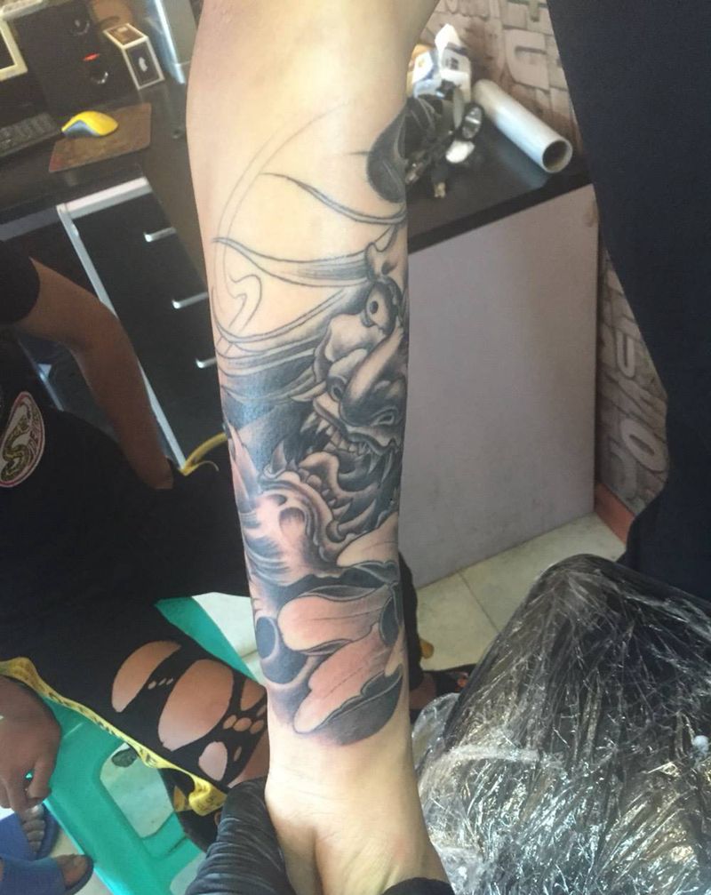 当前位置: 首页 >浙江省丽水市纹身店-金魁刺青纹身图案>小臂般若纹身图片_成品手臂传统人物鬼神宗教纹身图案