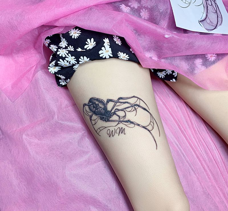 蜘蛛纹身图片_腿部欧美写实蜘蛛昆虫纹身图案