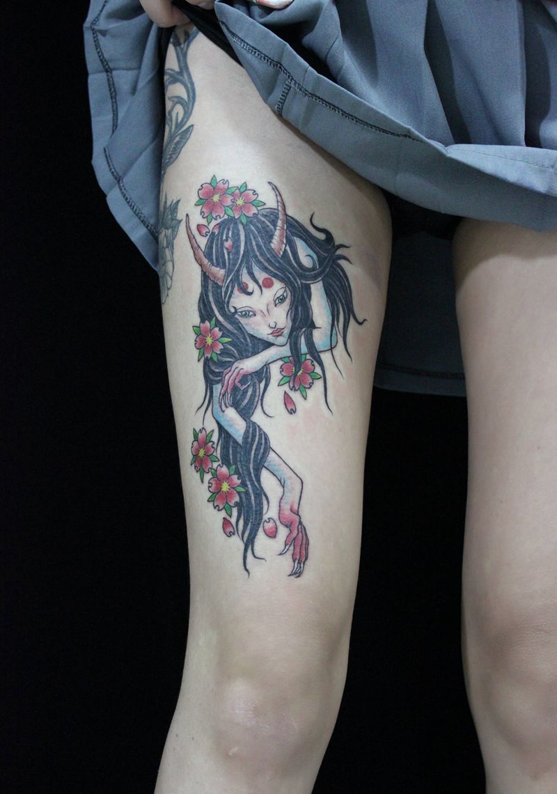 当前位置: 首页 >安徽省合肥市纹身店-丫丫刺青工作室纹身图案>夜叉纹身图片_腿部新传统魔女纹身图案