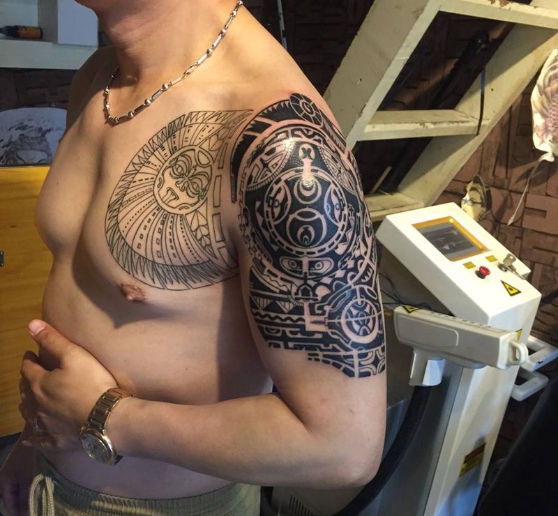 当前位置: 首页 >浙江省丽水市纹身店-金魁刺青纹身图案>巨石强森 玛雅图腾纹身图片_成品手臂胸部欧美习俗几何图腾静物纹身图案