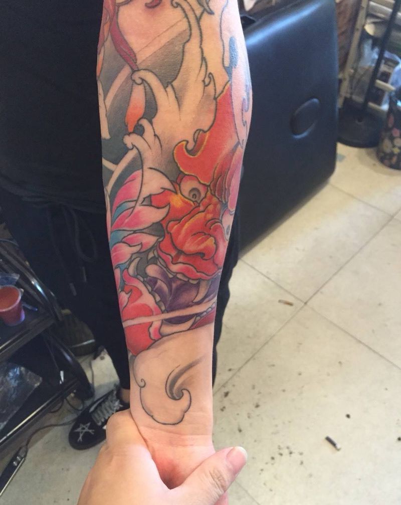 当前位置: 首页 >浙江省丽水市纹身店-金魁刺青纹身图案>彩色般若.纹身图片_成品手臂传统人物植物纹身图案