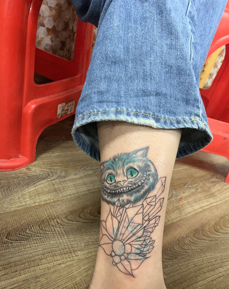 当前位置: 首页 >安徽省合肥市纹身店-丫丫刺青工作室纹身图案>猫咪遮盖老纹身纹身图片_腿部New School猫咪宝石遮盖纹身图案