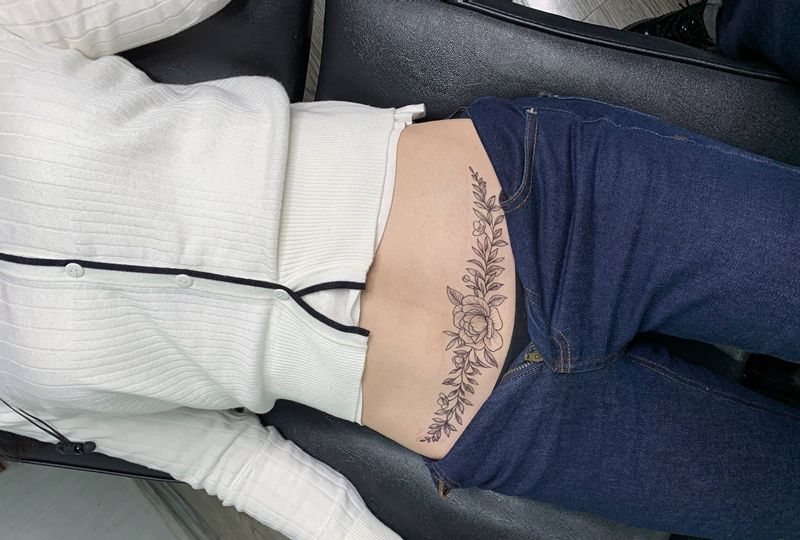花卉遮盖刨腹产疤痕纹身图片_腹部花遮盖疤痕刨腹产疤痕纹身图案