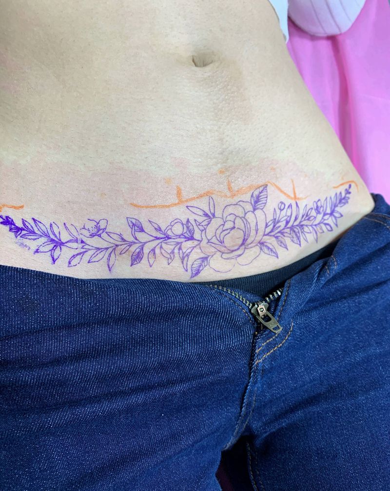 花卉遮盖刨腹产疤痕纹身图片_腹部花遮盖疤痕刨腹产疤痕纹身图案