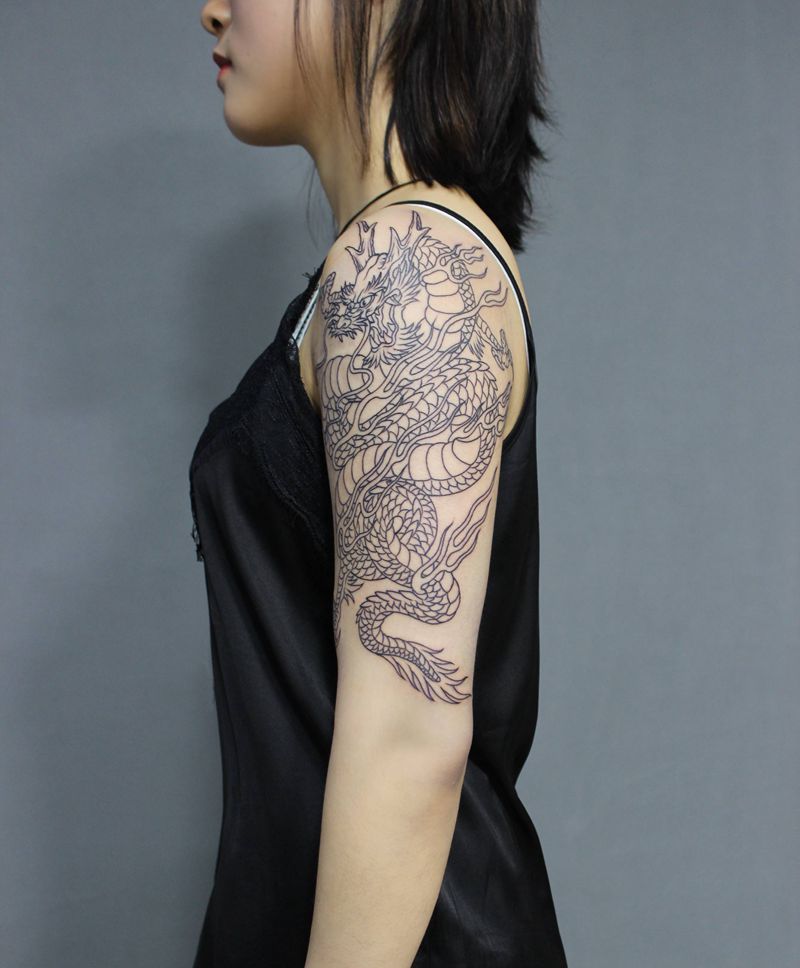 当前位置: 首页 >安徽省合肥市纹身店-丫丫刺青工作室纹身图案>中国风龙线条纹身图片_手臂新传统龙中国风纹身图案