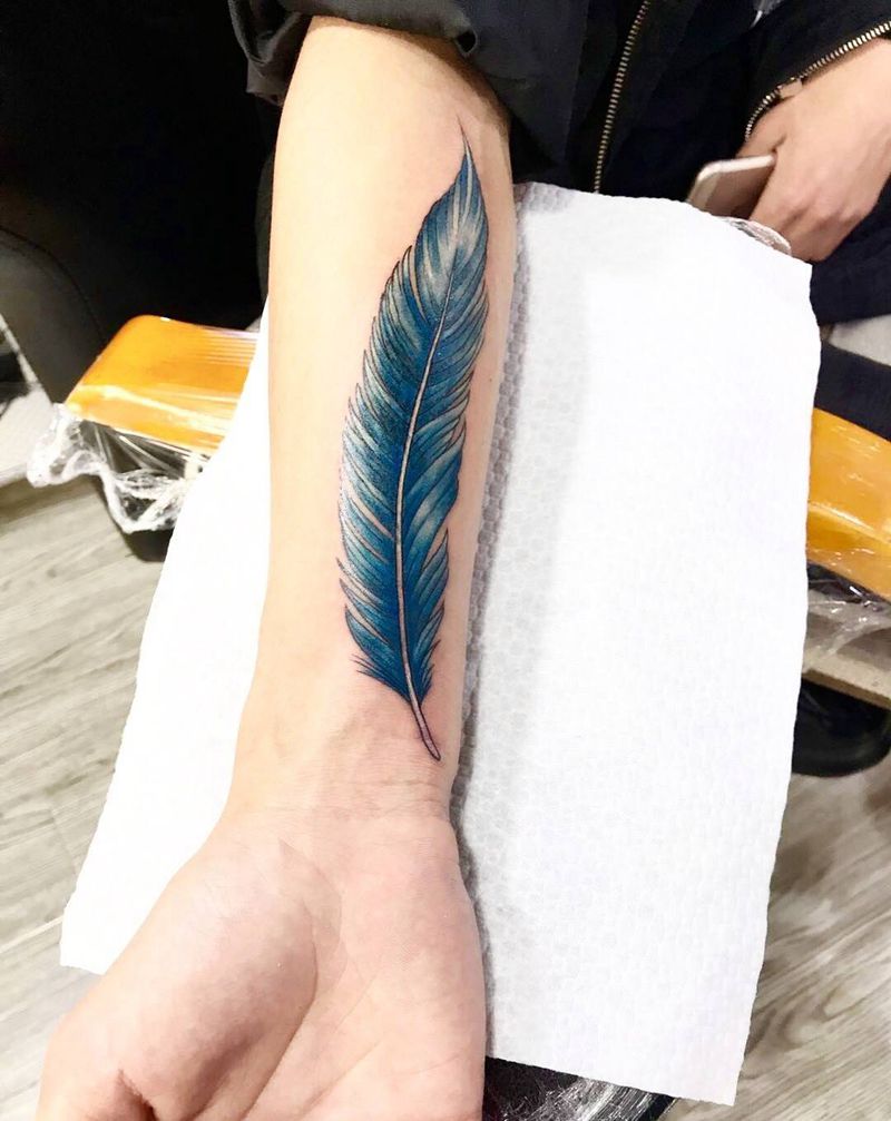 当前位置: 首页 >安徽省合肥市纹身店-丫丫刺青工作室纹身图案>羽毛遮盖老纹身纹身图片_成品手臂清新纹身图案