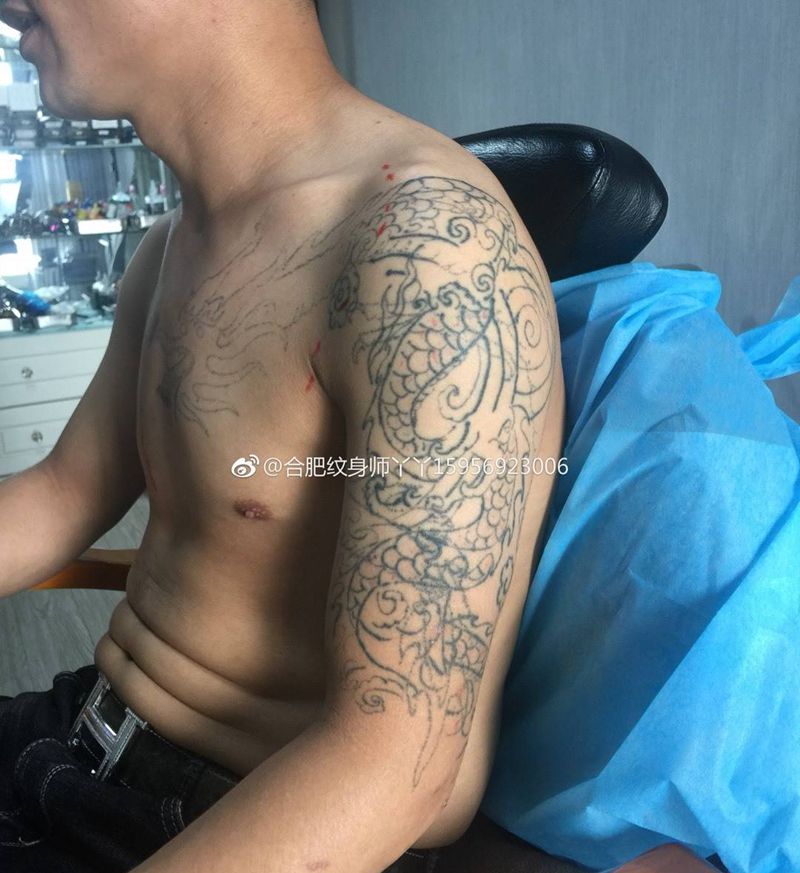 当前位置: 首页 >安徽省合肥市纹身店-丫丫刺青工作室纹身图案>遮盖老纹身纹身图片_成品手臂胸部传统动物龙中国风遮盖老纹身图案