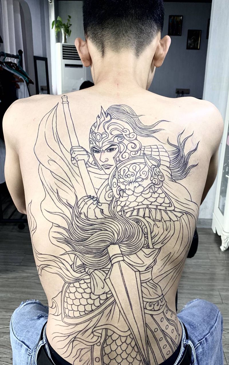 黑灰满背纹身图案