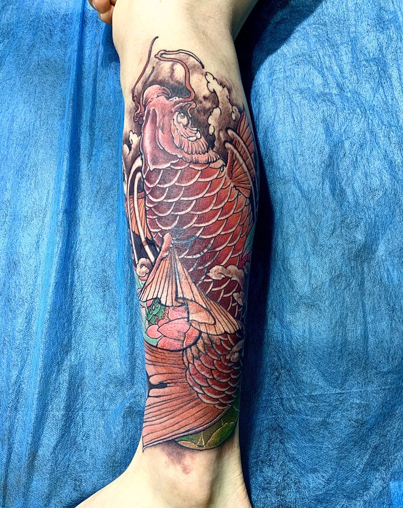 • T网红王老大花腿龙纹身图片_腿部新传统纹身图案