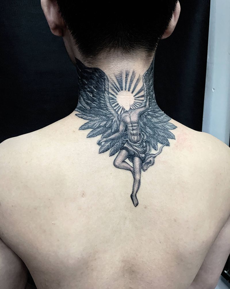 修改作品纹身图片_颈部欧美写实纹身图案